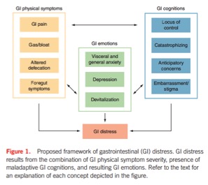 In particular, in gastroenterology there is the “GI Triad” of cognitions, emotions and visceral complaints: physical complains, intestinal emotions, and thought processes regarding such complaints.
